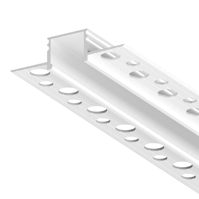 A plaster-in aluminium LED profile designed to create a clean, flush linear lighting detail within walls and ceilings. The lowered plaster wings allow the profile to be skimmed and painted for a seamless architectural finish, while the increased internal height helps achieve a smooth, uniform line of light with reduced LED spotting. Suitable for drywall and solid surfaces, this profile is ideal for refined interior finishing where a continuous, dot-free light effect is required. LED strip not included.