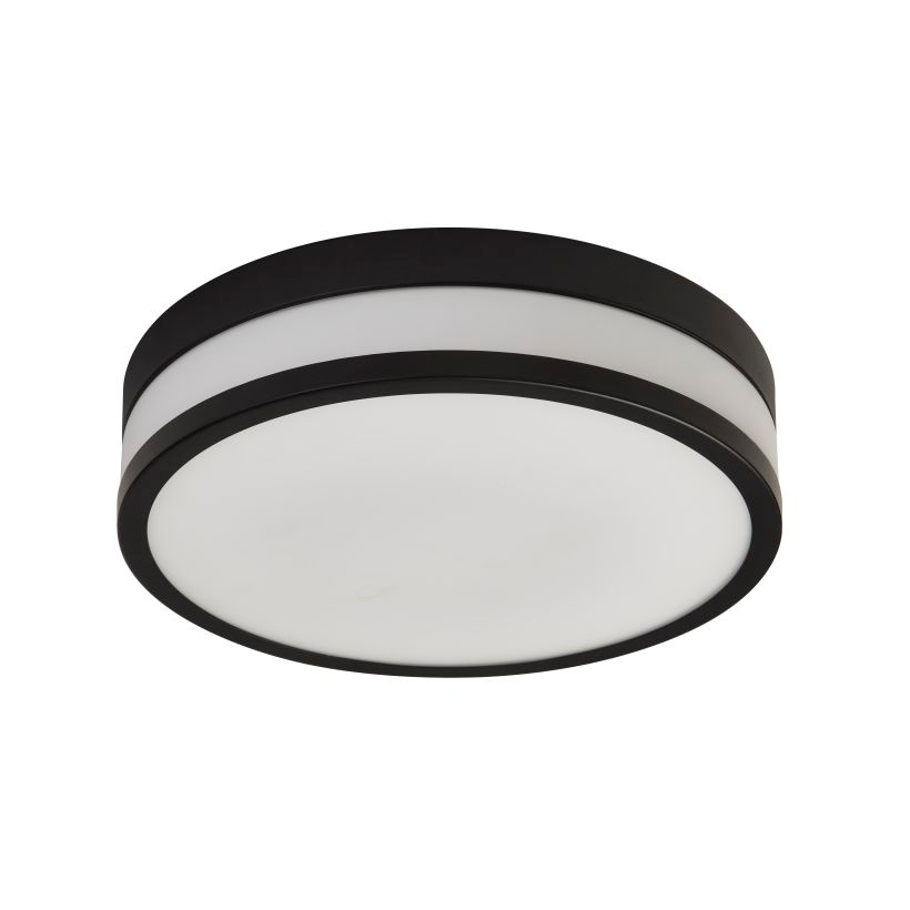 A sleek bathroom ceiling and wall light designed to deliver soft, even illumination with a refined contemporary look. The opal glass diffuser with contrasting matt black band provides comfortable, glare-free light, making it ideal for bathrooms, en-suites and utility spaces. IP44-rated and suitable for bathroom zone 2, this fitting features an integrated LED with mains dimming for practical everyday use. Driver included.