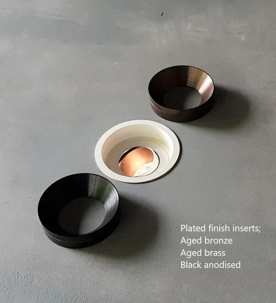 The JasperL Round LED Recessed dark-light down light has a discreet anti-glare look and offers an adjustable 30-degree tilt and 355-degree rotation. With high color rendering, you can customize your lighting setup with additional accessories such as the IP54 insert.